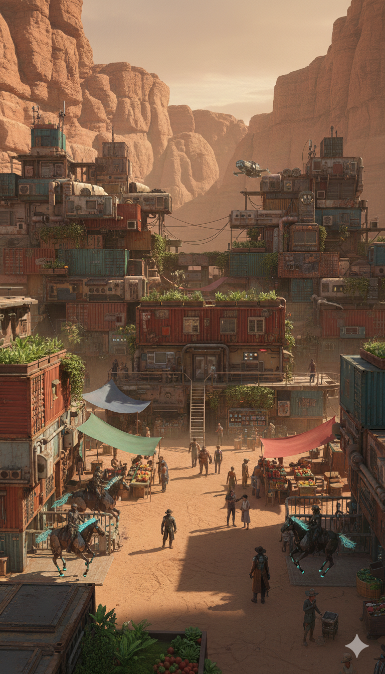 Stone Ridge, Mega-City, Dust Zones, Spirit Lands und Vaughn Dynamics – die zentralen Umgebungen von NEON FRONTIER.